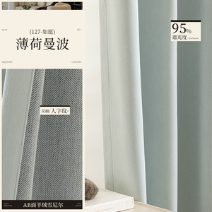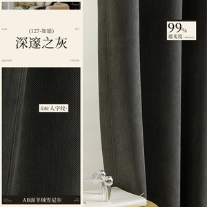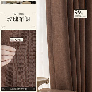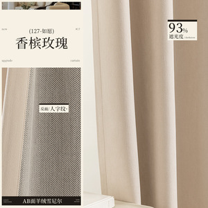 両面シェニールカーテン超柔らかい雲パイル人字柄フランス寝室高級感リビングクリーム風カーテン生地