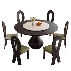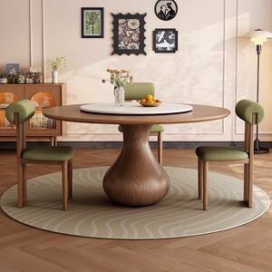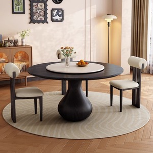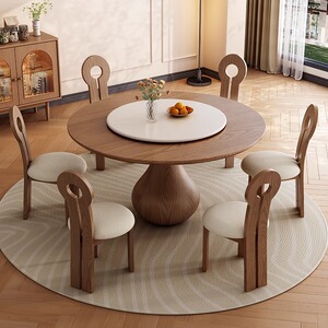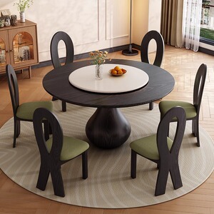 アンティークダイニングテーブル無垢材ラウンドテーブルシンプルな小さなアパートターンテーブルホームダイニングテーブルモダンなラウンドロックプレートダイニングテーブルと椅子の組み合わせ