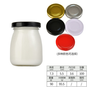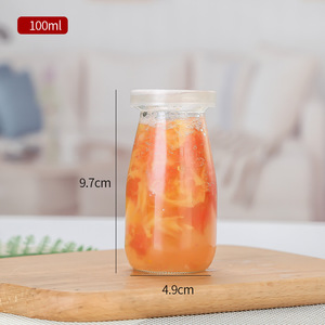100 ミリリットル透明増粘シルク口ガラスプリンボトル蓋付きヨーグルトボトル牛乳瓶ゼリー詰め替え空ボトル卸売