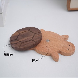 かわいい木製のカメのコースターのパーマ防止の簡単な断熱マットの漫画の木の磁気は台所の家庭用のテーブルのマットを吸います。