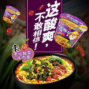 清真統一インスタントラーメンの樽詰めラーメンの古い祭壇の酸っぱい野菜の香辛料と牛肉の麺のフルバック