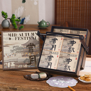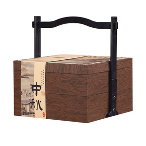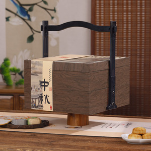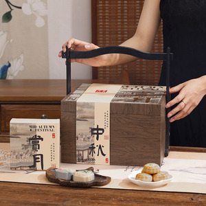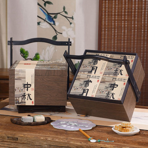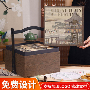 2025 ハイエンドポータブル月餅ギフトボックス模造木製中国風古代スタイル中秋節ギフトボックス 8 個二層空箱