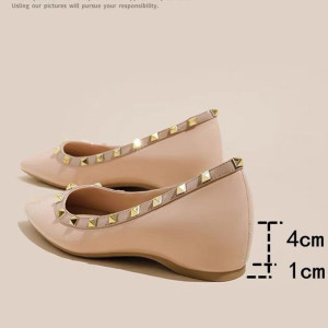 小个子5cm内增高铆钉尖头浅口单鞋女2025夏季新款一脚蹬瓢鞋船鞋