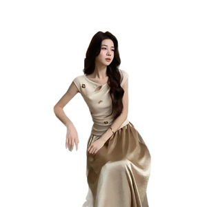 フランスのヘビービーズノースリーブベストウエスト痩身ハイウエストスカート気質ツーピースレディースウェア2025新しいスタイル
