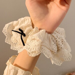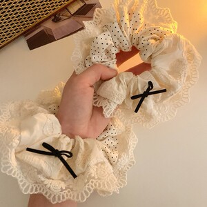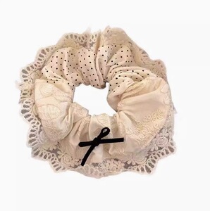 バレエ風花水玉リボンヘビーレース韓国風ヘアゴムかわいいクリームスイートガールヘアロープ女性用
