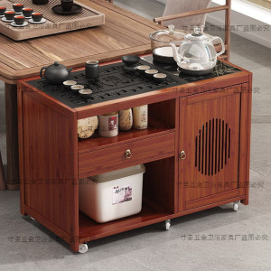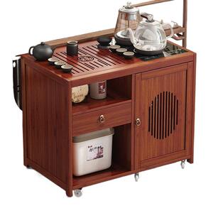 モバイルティーテーブル、小型家庭用小型ティーテーブル、水を沸かすオールインワンティーキャビネット、ティーカート、カンフーティーセット、竹ティーテーブル