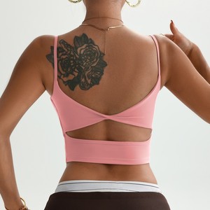 一体杯スポーツ下着フィットネスヨガ服上着ベストランニングトレーニングプラティ美背ブラジャーストラップ夏
