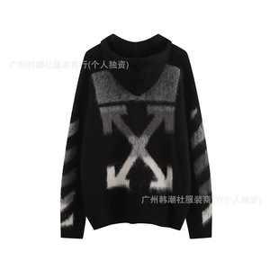 秋冬OFFモヘアセーターグラデーションOWアロープリント男女兼用ルーズニットセータートップクロスボーダー