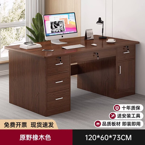 6 層の強化と厚みのある 28 デスクトップ 120*60 オーク色 + 3 つの引き出しと 1 つのキャビネット