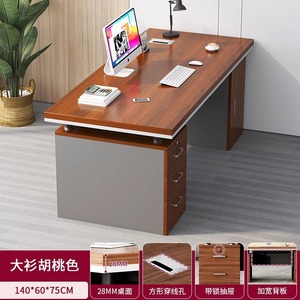 6層強化と厚みのある28デスクトップ140*60ウォールナット色+引き出し3つとキャビネット1つ