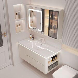 Hot智能收纳镜柜加大口径陶瓷盆+送货到家-100易清洁陶瓷一体盆+侧收纳+升级龙头