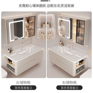 Hot智能收纳镜柜加大口径陶瓷盆+送货到家-下单时需向客服备注侧柜方向以便及时发货