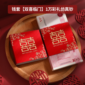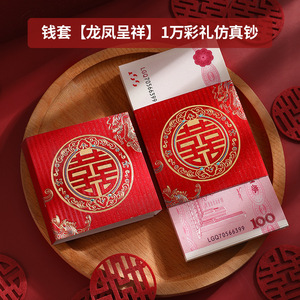 婚約ギフト模擬1万円小道具紙幣束セット、結婚祝いのお金、赤い封筒、お金の封筒、結婚式用の練習用クーポン