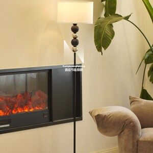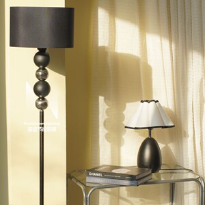 シンプルな北欧風高級感フロアライトリビングルームのソファの縁に高い顔の値が飾られています。