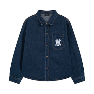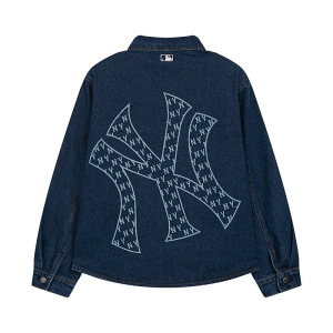 高版本.MLB春季新款百搭刺绣翻领学院风老花大logo宽松牛仔外套