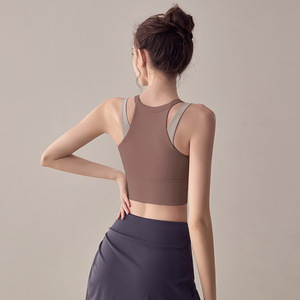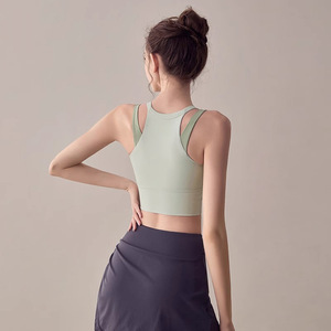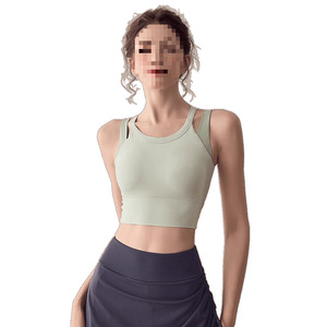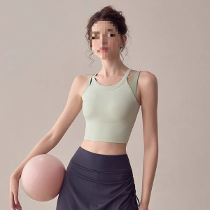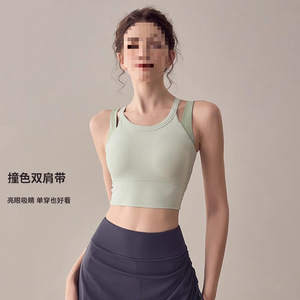 夏の新しいスポーツ下着女性のプッシュアップ耐衝撃ダブルショルダーストラップヨガブラランニングトレーニングフィットネスベスト