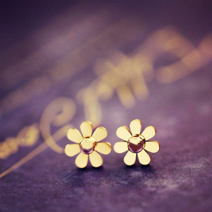 女性用イヤリング、韓国風、小さな生花の気質、シンプルなひまわりの耳のアクセサリー、多用途のローズゴールドメッキチタン鋼アクセサリー