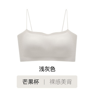 固定カップ極細ショルダーストラップ下着レディース夏薄型リキッドファンデーションインビジブルシームレスバックブラジャーベストの外でも着用可能