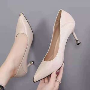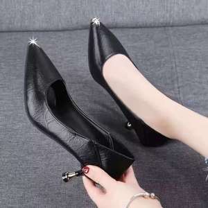 高跟皮鞋2025春季新款软皮高跟鞋黑色尖头皮鞋职业女细工作鞋单鞋
