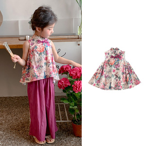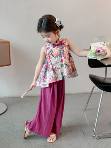 女の子の夏のスーツ 2025 新しいスタイルベビー新中国風ベスト 2 点セット子供の夏の中国風漢服