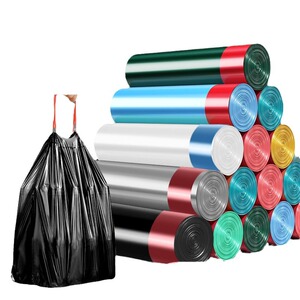 特厚ゴミ袋 黒色 大型 家庭用 50x60cm 巾着式 持ち手付き 厚手ビニール袋 卸売