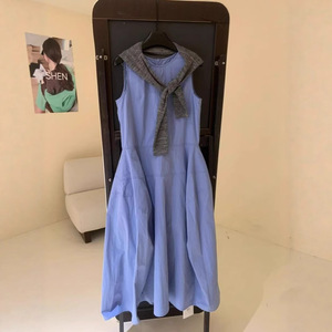2025年夏新作ニッチフレンチブルースタイルノースリーブベスト気質海辺休暇ドレスロングスカート
