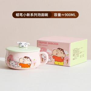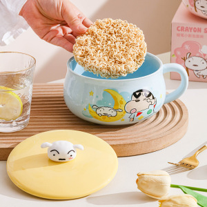 クレヨンしんちゃん陶磁器蓋付き取っ手付きカップラーメンボウル新品男の子女の子お誕生日プレゼント可愛いお土産プレゼント