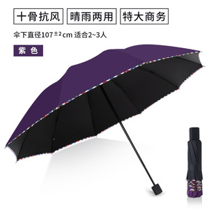 濃い紫★ビジネス10ボーン【エッジ補強】★晴雨兼用】傘下の直径107CM