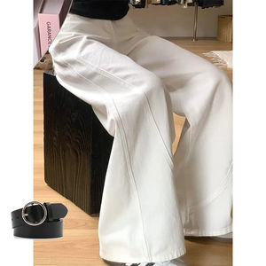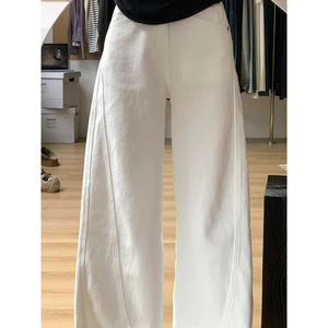 女性用の白いパンツ、ゆったりとしたデザイン、2025年春夏の新しいハイウエストのドレープが床に沿ったワイドレッグシミタージーンズ