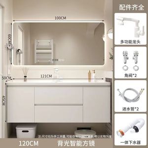 N 肌白-普通ミラーキャビネット-全面ミラー-120床置き-多機能招き猫蛇口