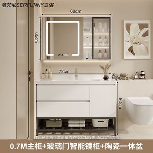 N 肌白-普通ミラーキャビネット-全面ミラー-70床置き-多機能招き猫蛇口