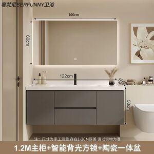 N ファッショングレー-普通ミラーキャビネット-フルミラー-120-ウォールキャビネット-多機能招き猫蛇口