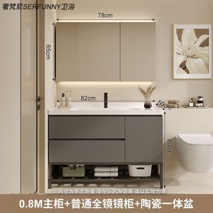 Nファッショングレー-普通ミラーキャビネット-全面ミラー-80床置き-多機能招き猫蛇口