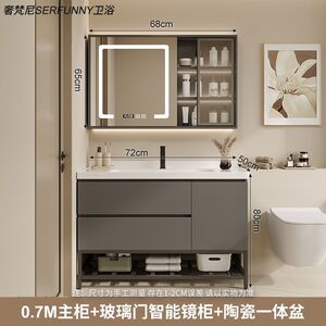 N ファッショングレー-普通ミラーキャビネット-フルミラー-70-ウォールキャビネット-多機能招き猫蛇口