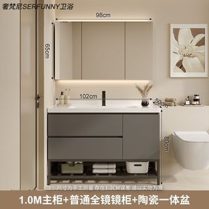 Nファッショングレー-普通ミラーキャビネット-全身ミラー-100床置き-多機能招き猫蛇口