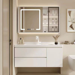 N Skin-feeling White-高級スマートミラーキャビネット-100床置き多機能招き猫蛇口