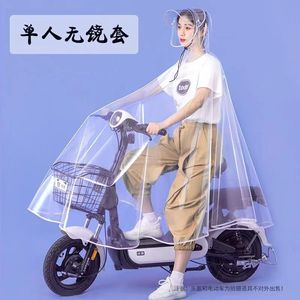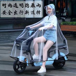 レインコートの電気自動車の男女のタイプは一人で透明な新型の親子の豪雨防止自転車の代わりにレインコートを運転します。