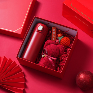 H03-魔法瓶カップ+タオル+キーホルダー[赤ギフトボックス+ギフトバッグ]