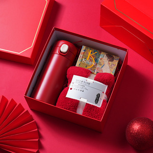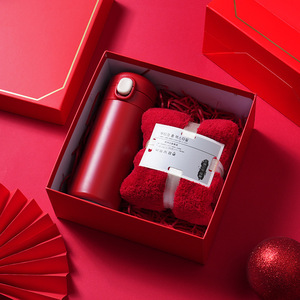 H02-魔法瓶カップ+タオル[赤ギフトボックス+ギフトバッグ]