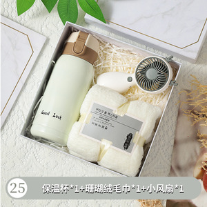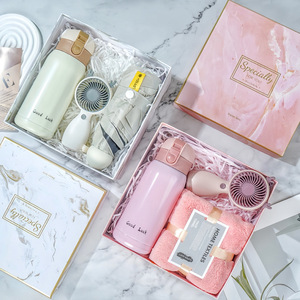 B05-魔法瓶カップ+タオル+扇子[ピンクギフトボックス+ギフトバッグ]