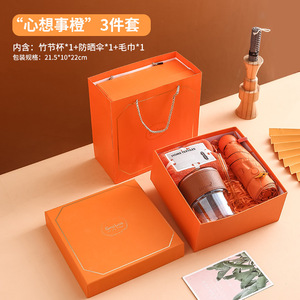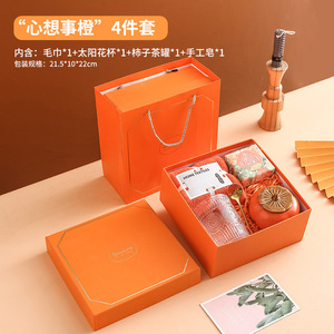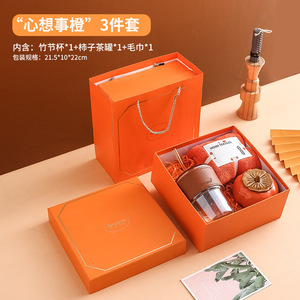 C13-魔法瓶カップ+タオル+柿瓶[オレンジギフトボックス+ギフトバッグ]