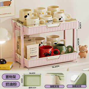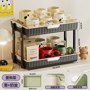 25年の新型の多層の水切りのコップの棚の家庭用の大きい幅の二重の水切りのPPのデスクトップの棚の水切りの棚