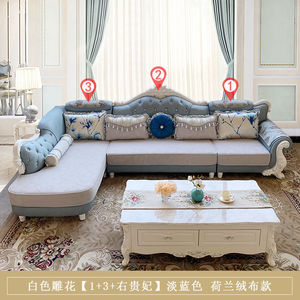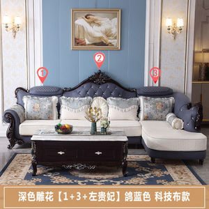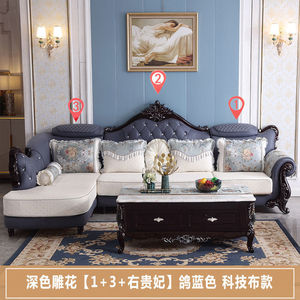 ヨーロピアンスタイルのファブリックソファリビングルームコーナーリクライニングサイズシンプルヨーロピアン無垢材テクノロジーファブリックソファコンビネーション取り外し可能と洗える
