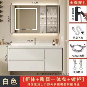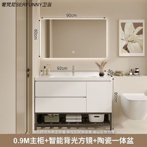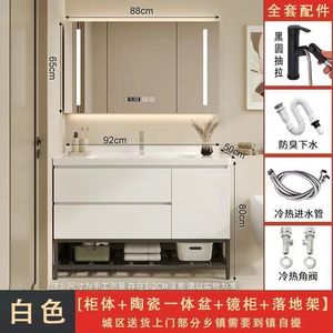 [肌のような白] フロアキャビネット - 完全に密閉されたスマートミラーキャビネット - 紙穴付き - 90 - 広東優磁器 - 期間限定無料黒丸引き出し