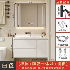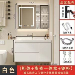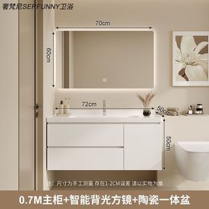 [肌のような白] フロアキャビネット - 完全に密閉されたスマートミラーキャビネット - 紙穴付き - 70 - 広東優磁器 - 期間限定無料黒丸引き出し