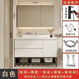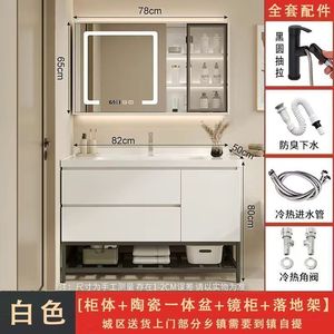 [肌のような白] フロアキャビネット - 完全密閉型普通ミラーキャビネット - 紙穴付き - 80 - 広東省優良磁器 - 期間限定無料黒丸引き出し