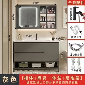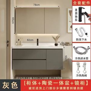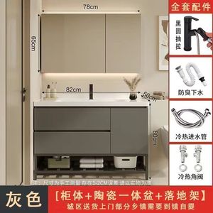 [ファッショングレー] フロアキャビネット - 完全密閉型スマートミラーキャビネット - 紙穴付き - 80 - 広東優磁器 - 期間限定無料黒丸引き出し
