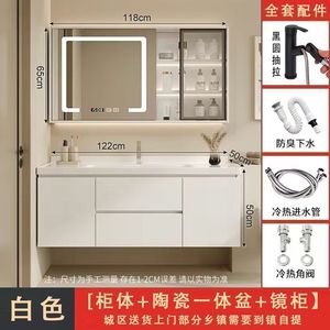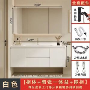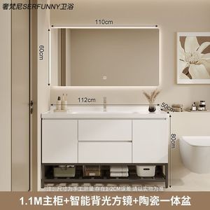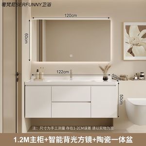 [肌のような白] フロアキャビネット - 完全に密閉されたスマートミラーキャビネット - 紙穴付き - 120 - 広東優磁器 - 期間限定無料黒丸引き出し