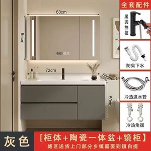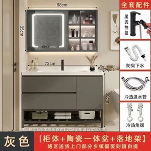 [ファッショングレー] フロアキャビネット - 完全密閉型スマートミラーキャビネット - 紙穴付き - 70 - 広東優磁器 - 期間限定無料黒丸引き出し