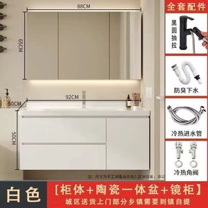 [肌のような白] フロアキャビネット - 完全密閉型普通ミラーキャビネット - 紙穴付き - 90 - 広東優磁器 - 期間限定無料黒丸引き出し